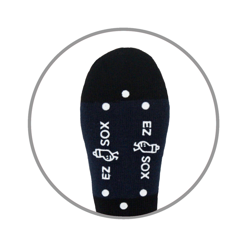 We start by using better yarn on our socks. This makes our socks soft, stretchy and easy to pull up over the toe and heel. All Ez Sox have a Y-fitted heel for better support. They are super comfortable and last a very long time. 80% cotton, 17% polyester, 3% spandex